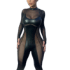 NightLush | Midnight Shadow Patchwork Mesh See-Through Sexy Tight Jumpsuit