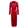 Indulge in the ultimate loungewear luxury that refuses to stay behind closed doors. Consequently, this Glossy Siren bathrobe and nightgown set is designed to catch every glimmer of light, offering a high-shine finish that feels as expensive as it looks. The flowing silhouette and deep-V neckline provide an effortless blend of comfort and high-octane glamour, making it perfect for those evenings when you want to feel like a total queen.